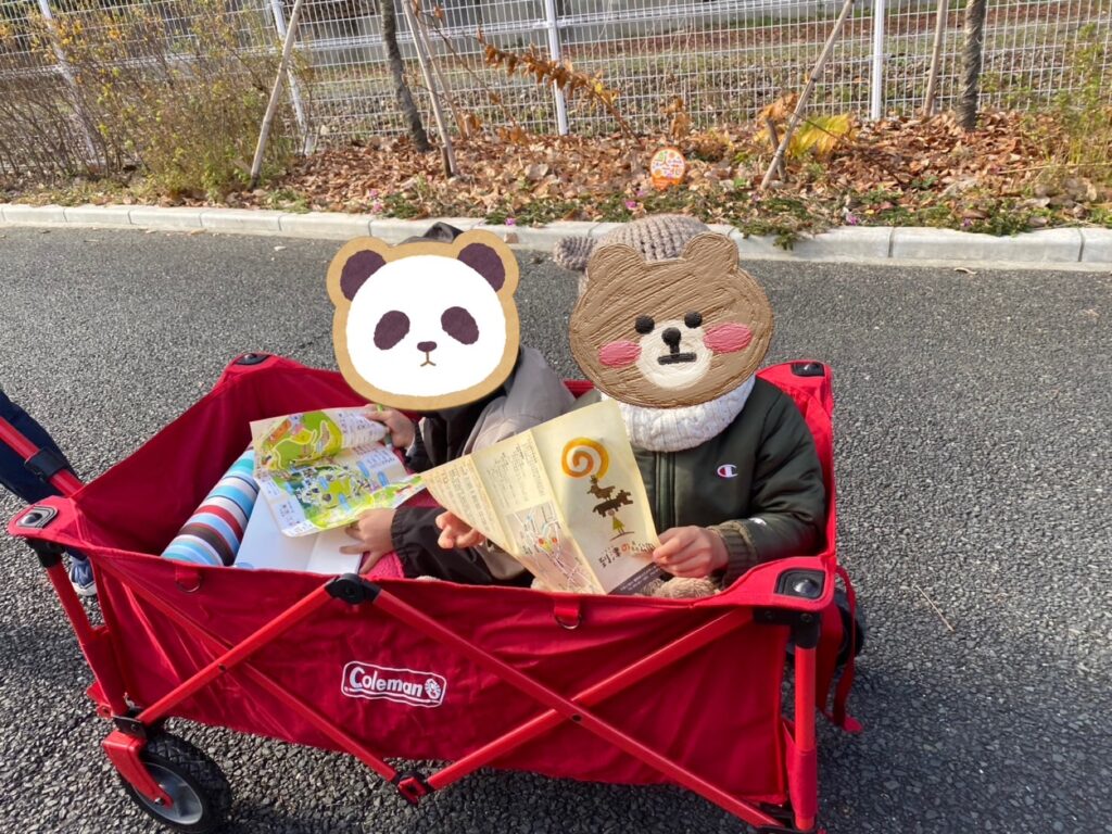 荷物を運ぶギアに子どもたちを乗せて園内を回りました。